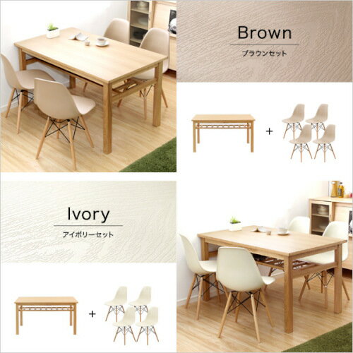 【商品について】ダイニングセット【Genero-ジェネロ-】(5点セット)■サイズ:テーブル(約)幅135x奥行80x高さ72cmチェア(約)幅46.5x奥行54x高さ81.5cm(座面高:45cm)※商品重量:テーブル(約)31kg チェア(約)4kg(1脚)■カラー:テーブル:ナチュラルチェア:ブラウン アイボリー■素材:テーブル本体:天然木アッシュ材天板:天然木アッシュ突版表面加工:ウレタン塗装チェアABS樹脂、天然木、スチール■その他:・テーブル/お客様組立商品です・チェア/お客様組立商品です・梱包サイズ:テーブル(約)139x84x15cm(6.3才)(約)35kg・梱包重量:(約)35kgチェア(約)49x47x57cm(4.7才)(約)10kg(2脚入り/1梱包)・同色4脚セットでの販売です。