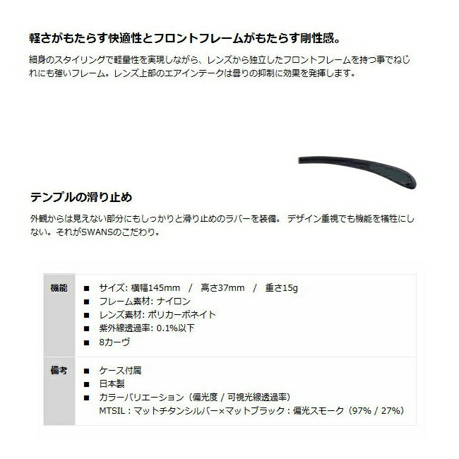 【SWANS/スワンズ】Airless-Wave SA-501(MTSIL) 929243 偏光レンズ サングラス スポーツサングラス 偏光サングラス 超軽量グラス エアレスシリーズ